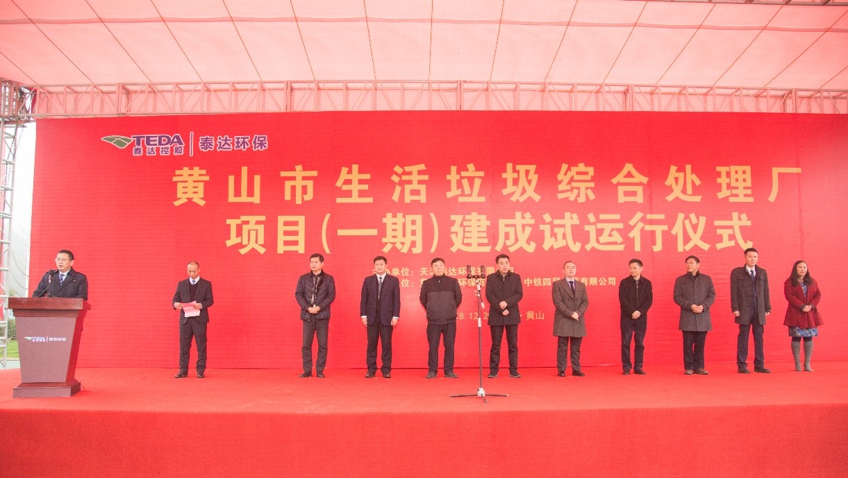黃山市市委副書記、市長孔曉宏,黃山市副市長楊龍,天津泰達(dá)股份有限公司黨委書記、董事長胡軍,中鐵四局集團(tuán)有限公司黨委書記、董事長張河川,天津泰達(dá)股份有限公司紀(jì)委書記付強(qiáng)、總經(jīng)濟(jì)師彭瀚、財(cái)務(wù)總監(jiān)趙春燕,天津泰達(dá)環(huán)保黨總支書記滕丹、天津泰達(dá)環(huán)保有限公司副總經(jīng)理陳艷國及黃山市三區(qū)四縣等相關(guān)領(lǐng)導(dǎo)、黃山泰達(dá)環(huán)保有限公司、中鐵四局有限公司、安徽電建二公司等參建單位和周邊鄉(xiāng)鎮(zhèn)嘉賓等200余人共同見證了本次啟動儀式。
