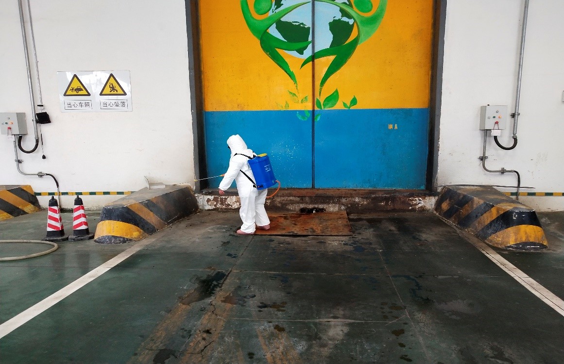 圖4 垃圾卸料平臺(tái)工作人員在消毒