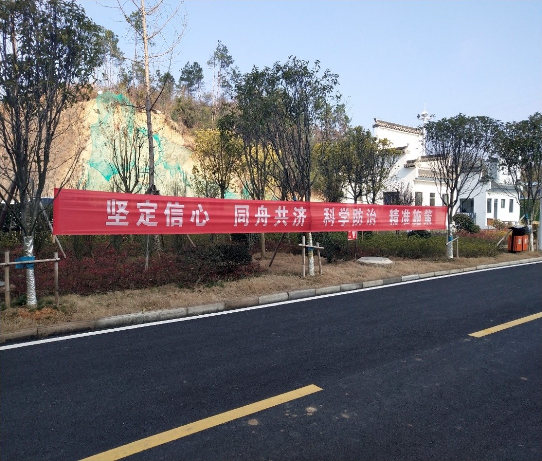 4.防控宣傳到位:傳達(dá)上級(jí)文件精神、貼上橫幅標(biāo)語(yǔ)以警示。