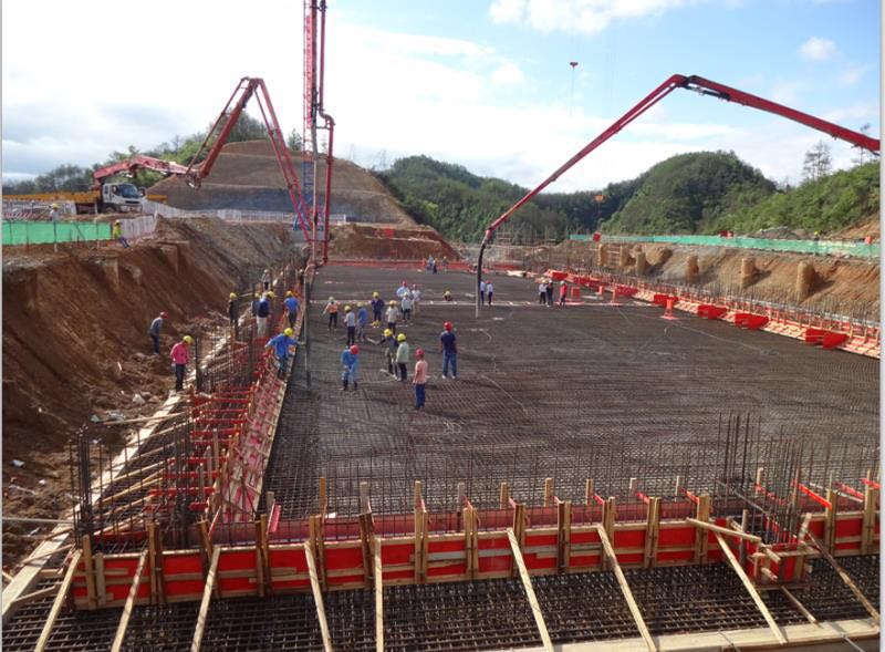市生活垃圾綜合處理廠項(xiàng)目垃圾池及滲濾液收集池底板大體積混凝土開澆