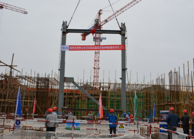 2017年10月20日市生活垃圾綜合處理廠項目鍋爐鋼架吊裝完成。